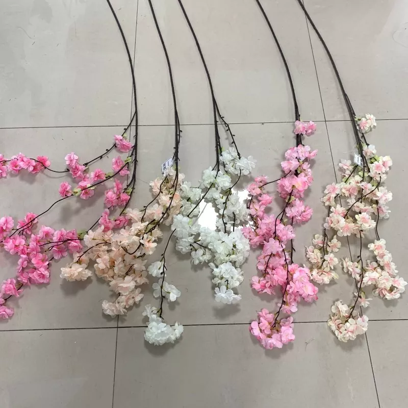 Yapay kiraz çiçeği dallarında üç kat ipek yaprakları, pembe organlar, beş dallı dal ve dört set yeşil yaprak bulunur. Yaklaşık 63 cm (yaklaşık 2 inç) boyunda dururken, ev dekorasyonu ve düğün düzenlemeleri de dahil olmak üzere çeşitli ayarlar için uygundur.